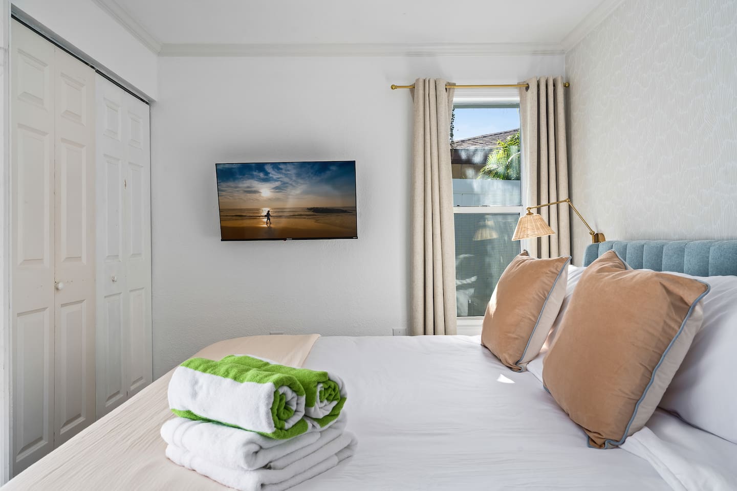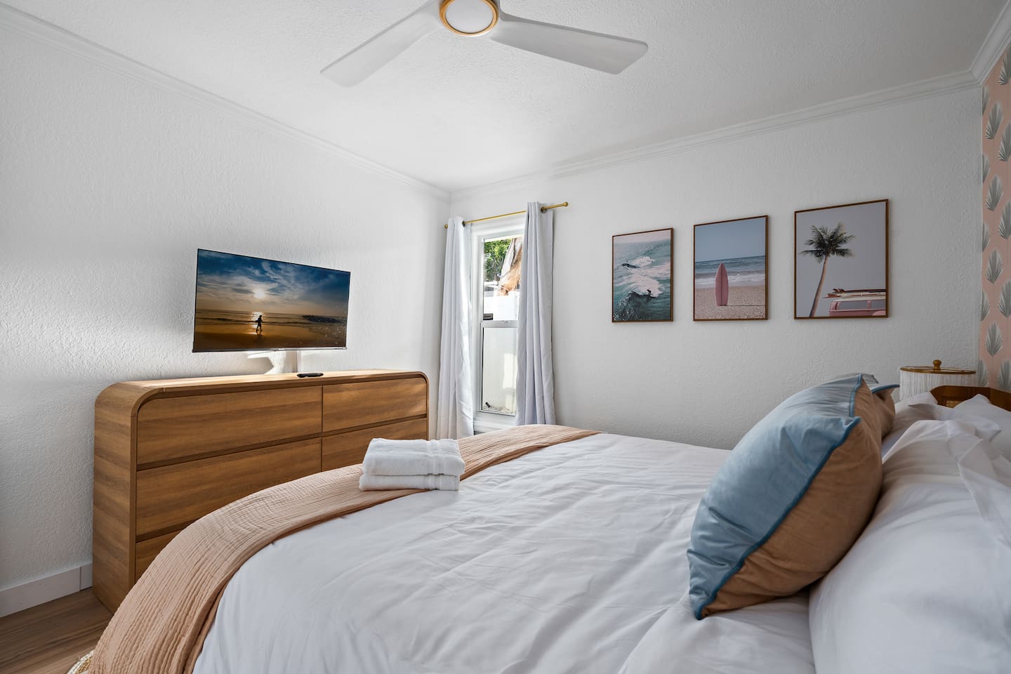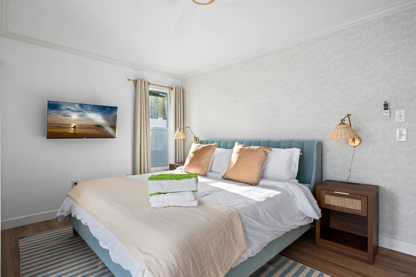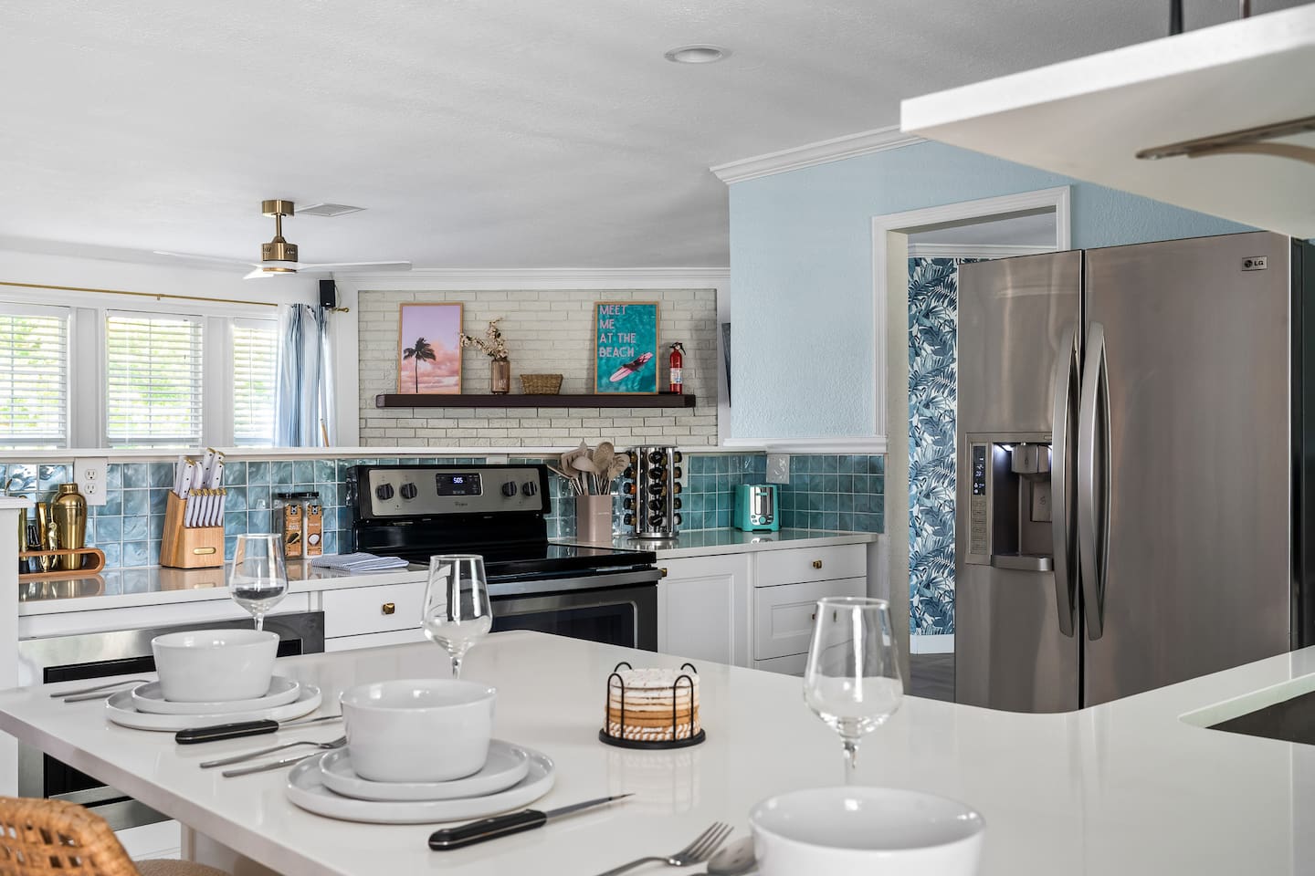🏖️ Blue Waves Getaway | Coastal Fun for the Whole Crew! Sleeps 11 • 4 Bedrooms • 2 Bathrooms • Heated Pool • Hot Tub • Indoor & Outdoor Movie Theaters • Sensory Space • Putting Green • Sandpit • Fire Pit • Karaoke • Pool Table• Air Hockey • Ping Pong • Shuffleboard • Grill Welcome to Blue Waves Getaway, your dreamy coastal retreat in Bradenton, Florida! Designed with families in mind, this 4-bedroom, 2-bath escape blends beachy charm with endless entertainment—from indoor and outdoor movie theaters, to a kid-friendly sensory space, to a backyard oasis complete with a pool & hot tub with pull down Movie Screen, a putting green, kids sandpit and fireplace overlooking the green. Whether you're enjoying sunny poolside afternoons or winding down with a movie under the stars, Blue Waves Getaway is the ultimate spot to relax, play, and make unforgettable memories. 🗺️ Distance to Popular Attractions De Soto National Memorial 8-minute drive | 📍 3.3 miles 📌 8300 De Soto Memorial Hwy, Bradenton, FL 34209 The Bishop Museum 8-minute drive | 📍 3.3 miles 📌 201 10th St W, Bradenton, FL 34205 Riverwalk 9-minute drive | 📍 3.4 miles 📌 452 3rd Ave W, Bradenton, FL 34205 LECOM Park 10-minute drive | 📍 3.8 miles 📌 1611 9th St W, Bradenton, FL 34205 Robinson Preserve 11-minute drive | 📍 4 miles 📌 1704 99th St NW, Bradenton, FL 34209 Anna Maria Island 23-minute drive | 📍 6.9 miles 📌 101 Elm Ave, Anna Maria, FL 34216 IMG Academy 17-minute drive | 📍 7.6 miles 📌 4350 El Conquistador Pkwy, Bradenton, FL 34210 Bradenton Beach 16-minute drive | 📍 7.9 miles 📌 611 FL-789, Bradenton Beach, FL 34217 Bradenton Airport (Sarasota–Bradenton Intl - SRQ) 30-minute drive | 📍 13.9 miles 📌 6000 Airport Cir, Sarasota, FL 34243 Room-by-Room Breakdown 🌊 The Driftwood Suite (Primary Bedroom) This serene master suite features a king bed, ensuite bathroom with double vanity and a walk-in shower (no tub). You'll also find: - Smart TV - Dresser - Walk-in closet - Full-length standing mirror - Seating ottoman - Blackout curtains for those extra-lazy mornings - Nightstands with built-in charging ports 🏄♀️ The Surf Shack (Kids’ Room) This bright, playful room sleeps up to 5 kids with a L-shaped bunk bed and trundle (all twin-sized). Designed for fun, creativity, and comfort, this room includes: - Fun Surf theme - A reading nook with books for bedtime stories - Wall-mounted tic-tac-toe - Closet converted into a sensory space featuring: - Chalkboard wall - Whiteboard - Tactile sensory panels - Sparkling sequin wall - Smart TV when Mom and Dad need a break - Dresser 🌴 The Pink Palm Room (King Bedroom #2) Relax in tropical comfort with: - A plush king bed - Smart TV - Dresser - Lamps with built-in charging ports 🌺 The Sanddollar (King Bedroom #3) Another peaceful escape featuring: - Cozy king bed - TV & dresser - Nightstands with built-in charging ports ✨ Features & Amenities: - 🏊♀️ Private Pool + Hot Tub - 🎬 Indoor Theater Room with Karaoke Machine - 🌌 Outdoor Movie Theater viewable from the pool and hot tub - 🧠 Kids’ Sensory Space - 🏌️♂️ Putting Green & Sand Play Pit - 🔥 Outdoor Fireplace + Lounge Seating - 📺 Smart TVs in every bedroom - 🚿 2 Full Bathrooms - 🍽️ Fully Stocked Kitchen - 🧺 Washer & Dryer - 🛜 High-Speed WiFi - 🅿️ Free Parking - ☀️ Just Minutes from Beaches, Dining, & Shops!