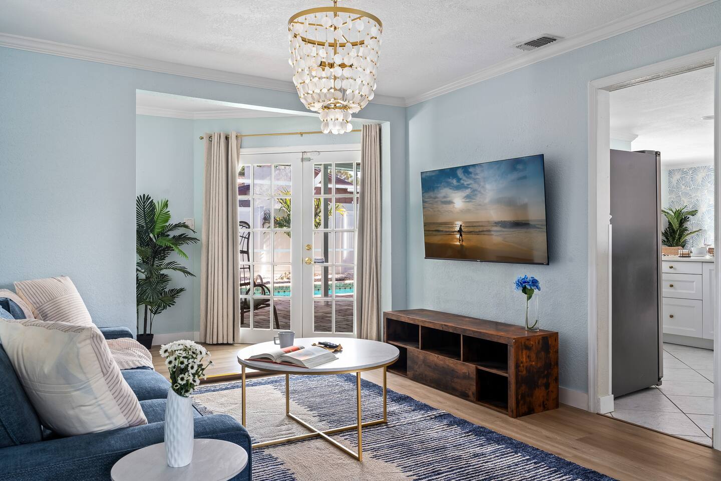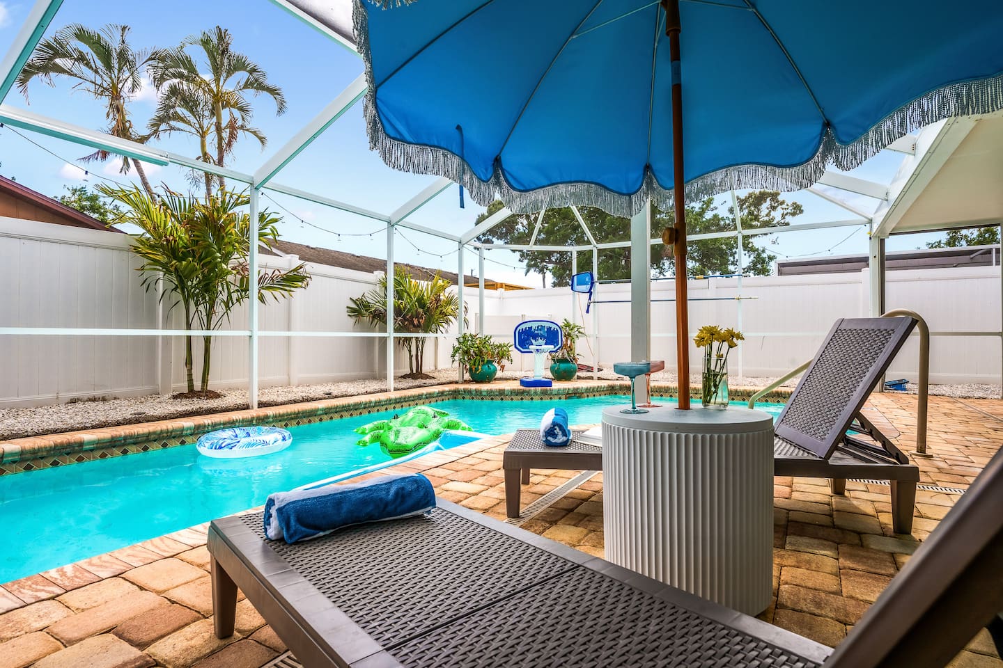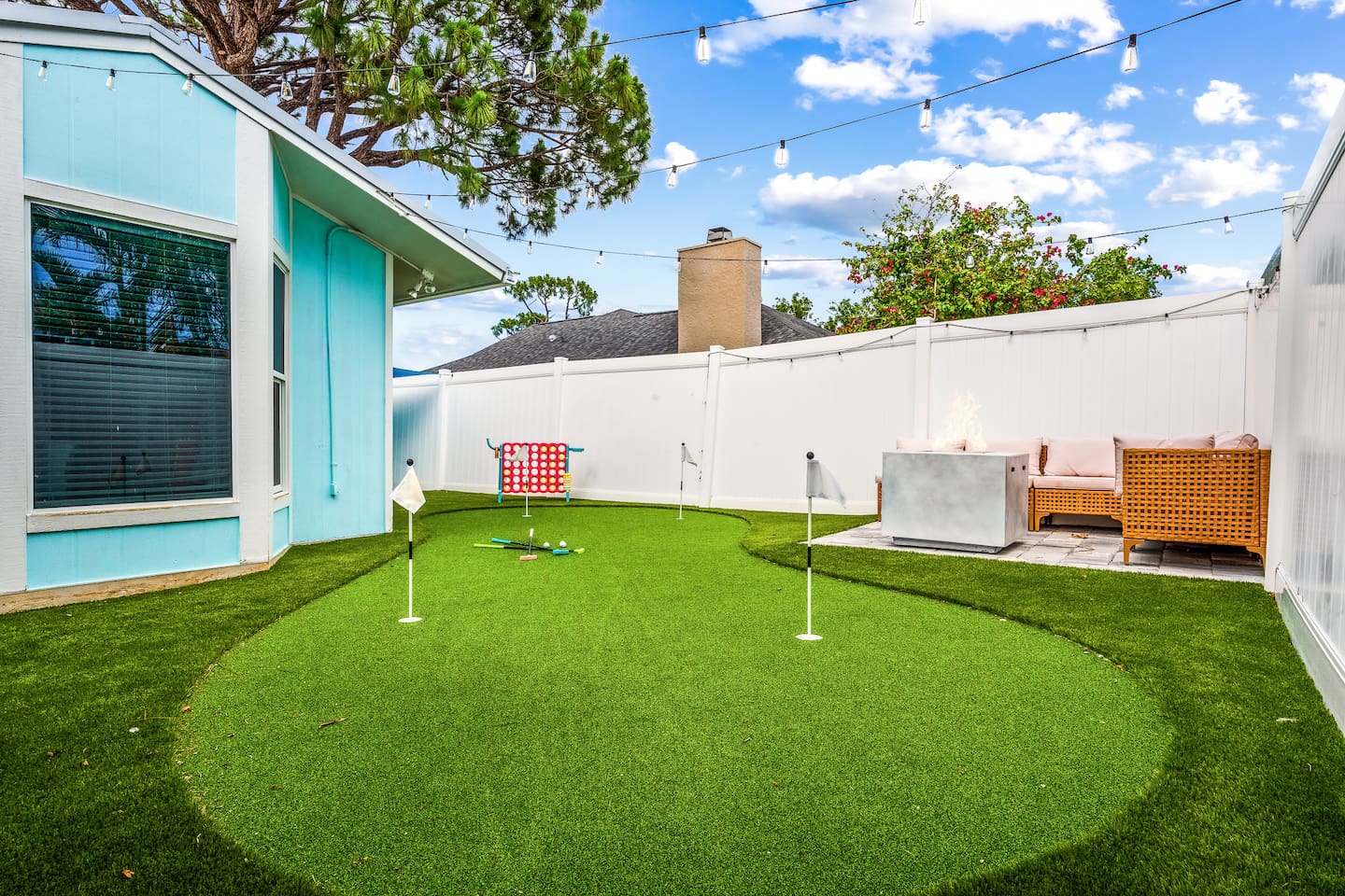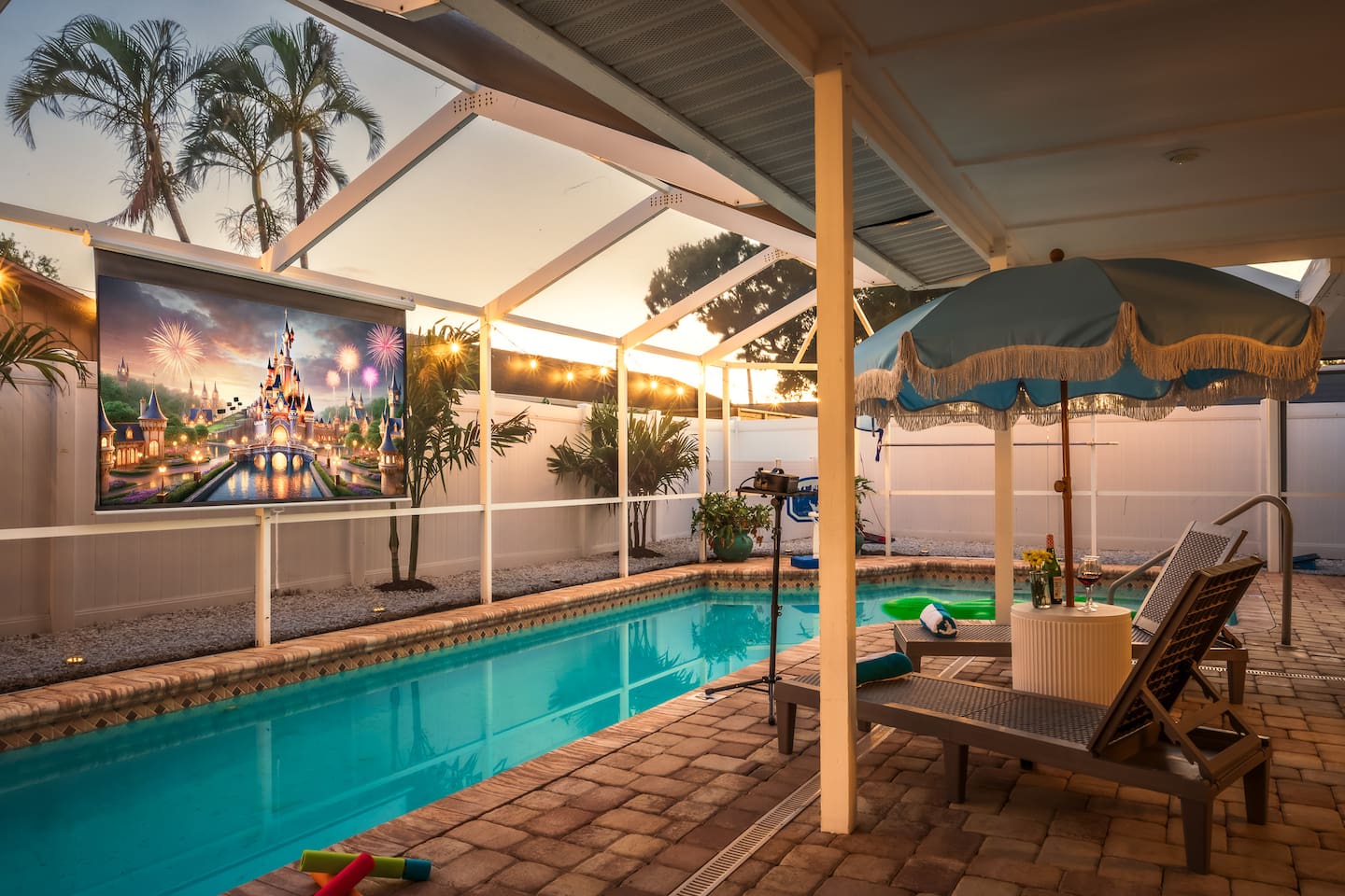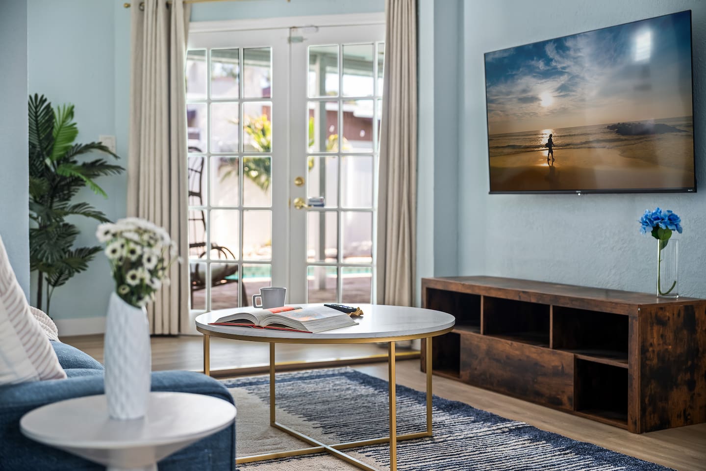 This isn’t just a vacation home — it’s Blue Waves Getaway, where every room brings a splash of coastal charm and every corner invites connection, creativity, and fun. Perfect for family gatherings, multi-generational trips, or groups looking for a Florida stay full of sunshine and smiles. Sleeps 11 • 4 Bedrooms • 2 Bathrooms • Heated Pool • Hot Tub • Movie Theaters • Putting Green • Sandpit • Fire Pit • Karaoke • Pool Table• Air Hockey • Ping Pong • Shuffleboard