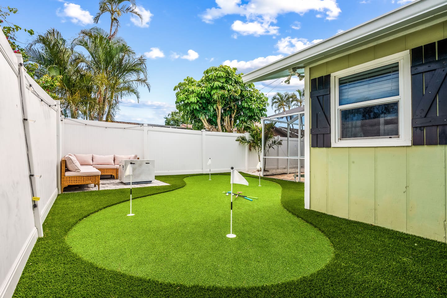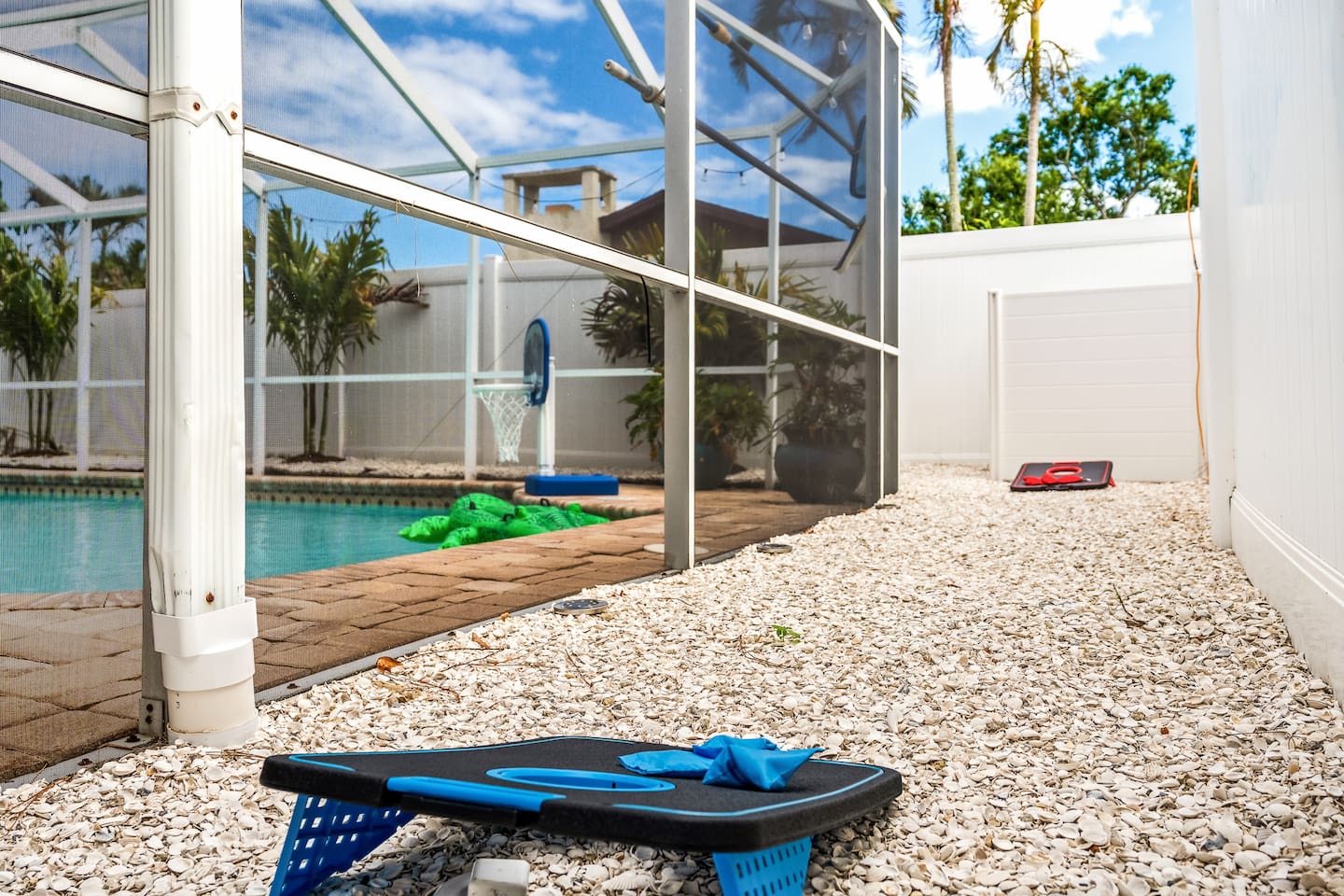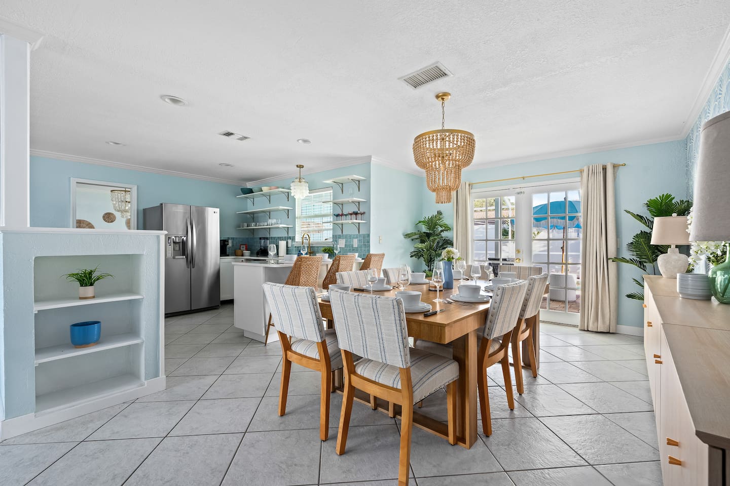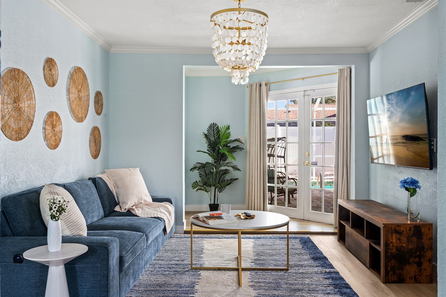 This isn’t just a vacation home — it’s Blue Waves Getaway, where every room brings a splash of coastal charm and every corner invites connection, creativity, and fun. Perfect for family gatherings, multi-generational trips, or groups looking for a Florida stay full of sunshine and smiles. Sleeps 11 • 4 Bedrooms • 2 Bathrooms • Heated Pool • Hot Tub • Movie Theaters • Putting Green • Sandpit • Fire Pit • Karaoke • Pool Table• Air Hockey • Ping Pong • Shuffleboard