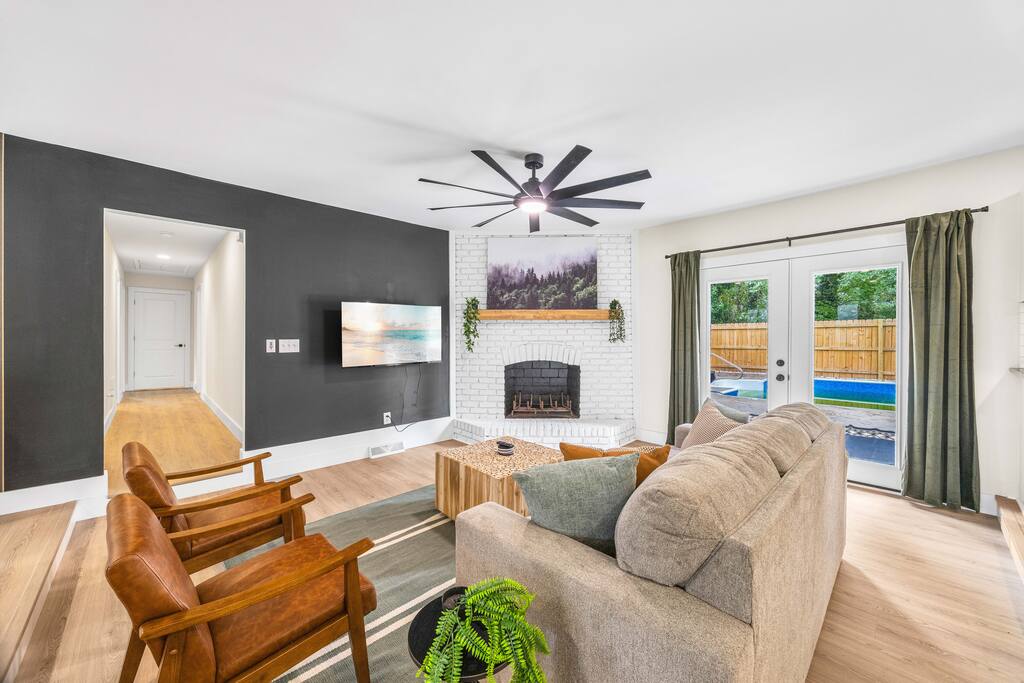 Welcome to your nature-inspired getaway! This 4-bedroom, 2.5-bath retreat is designed for comfort, relaxation, and endless fun—perfect for families, friends, or group trips. 🛋 **Indoor Living** * Spacious open-concept layout with nature-themed décor * Cozy living area with comfortable seating and smart TV * Fully equipped kitchen and dining area 🛏 **Bedrooms & Bathrooms** * 4 Bedrooms thoughtfully designed with natural, calming touches * 2.5 Bathrooms for convenience and privacy * Fresh linens, storage, and cozy bedding in every room 🎮 **Game Room & Entertainment** * Pool table for friendly competition * Ping pong table for fast-paced fun * Built-in bar area for entertaining * TV for sports, movies, or gaming nights 🌿 **Outdoor Oasis** * Private pool for swimming and lounging * Relaxing jacuzzi hot tub * Outdoor fireplace for cozy evenings * Large outdoor dining table, perfect for gatherings * Outdoor projector for movie nights under the stars ✨ **Theme & Atmosphere** * Nature-inspired design flows throughout the home * A relaxing, adventurous vibe that blends indoor comfort with outdoor fun