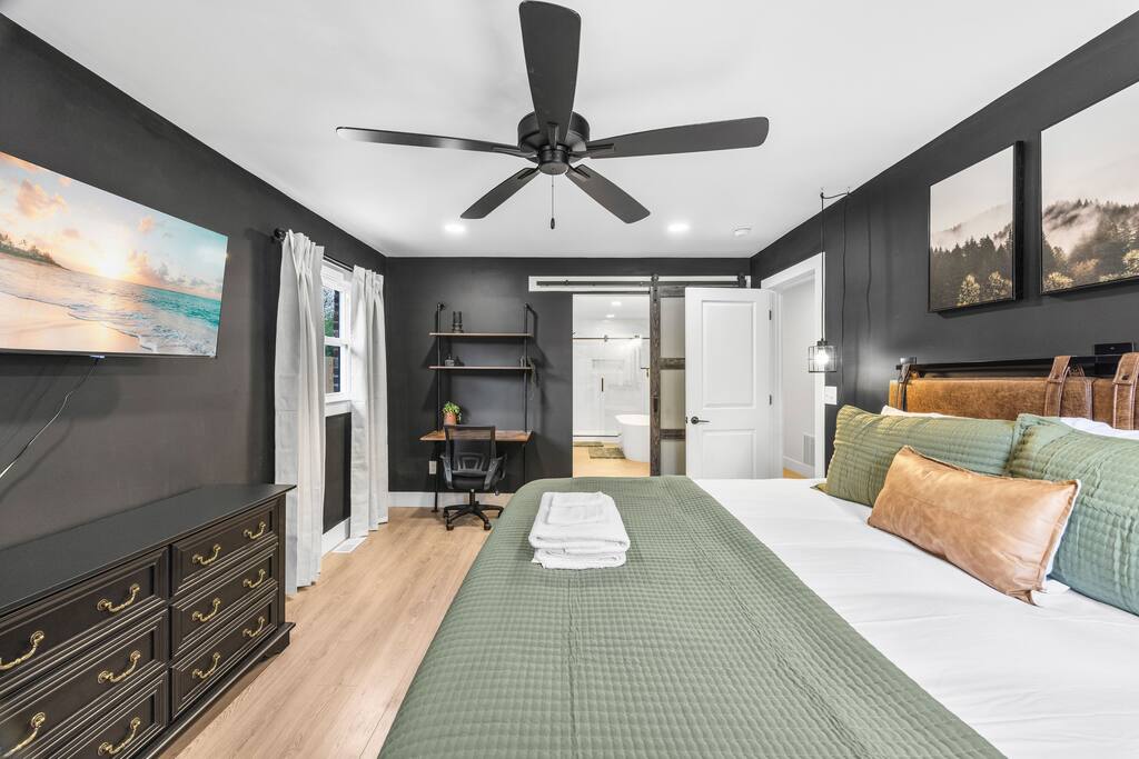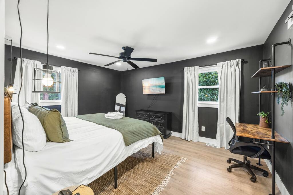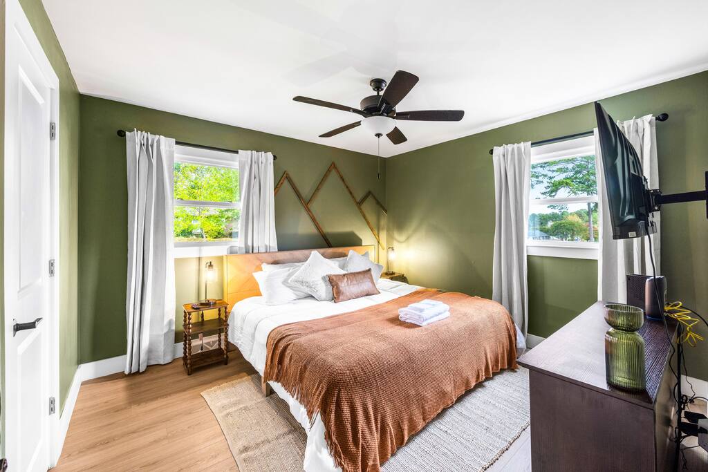 The home comfortably sleeps 10 guests, with additional sleeping space available on a pullout couch and a trundle bed in the kids’ room. For groups larger than 10, there is a $35 per-person fee to accommodate the extra guests.