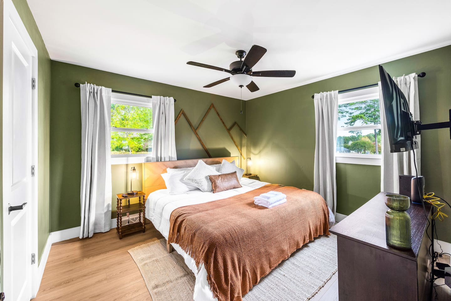 The home comfortably sleeps 10 guests, with additional sleeping space available on a pullout couch and a trundle bed in the kids’ room. For groups larger than 10, there is a $35 per-person fee to accommodate the extra guests.