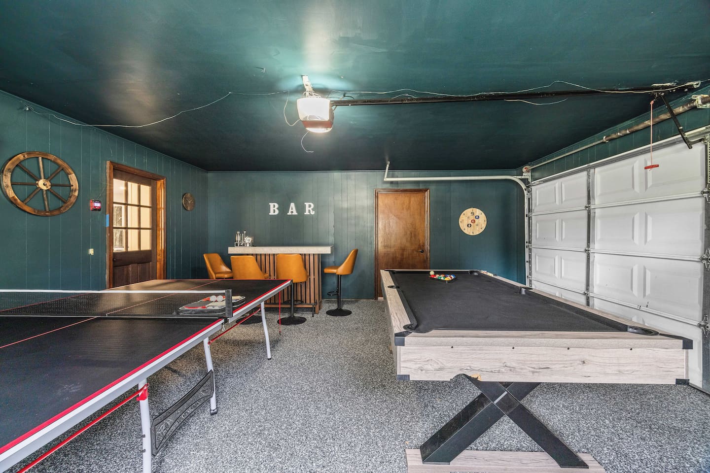 Welcome to your nature-inspired getaway! This 4-bedroom, 2.5-bath retreat is designed for comfort, relaxation, and endless fun—perfect for families, friends, or group trips. 🛋 **Indoor Living** * Spacious open-concept layout with nature-themed décor * Cozy living area with comfortable seating and smart TV * Fully equipped kitchen and dining area 🛏 **Bedrooms & Bathrooms** * 4 Bedrooms thoughtfully designed with natural, calming touches * 2.5 Bathrooms for convenience and privacy * Fresh linens, storage, and cozy bedding in every room 🎮 **Game Room & Entertainment** * Pool table for friendly competition * Ping pong table for fast-paced fun * Built-in bar area for entertaining * TV for sports, movies, or gaming nights 🌿 **Outdoor Oasis** * Private pool for swimming and lounging * Relaxing jacuzzi hot tub * Outdoor fireplace for cozy evenings * Large outdoor dining table, perfect for gatherings * Outdoor projector for movie nights under the stars ✨ **Theme & Atmosphere** * Nature-inspired design flows throughout the home * A relaxing, adventurous vibe that blends indoor comfort with outdoor fun