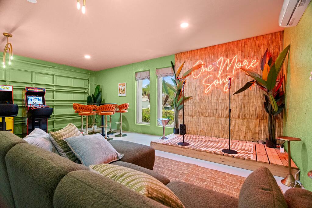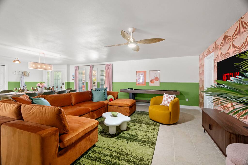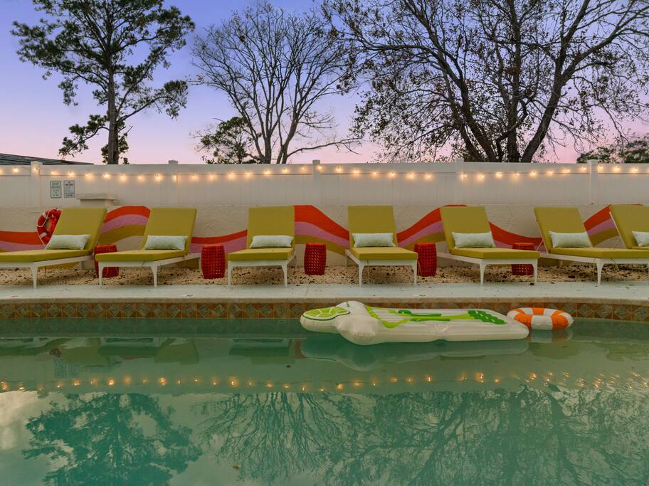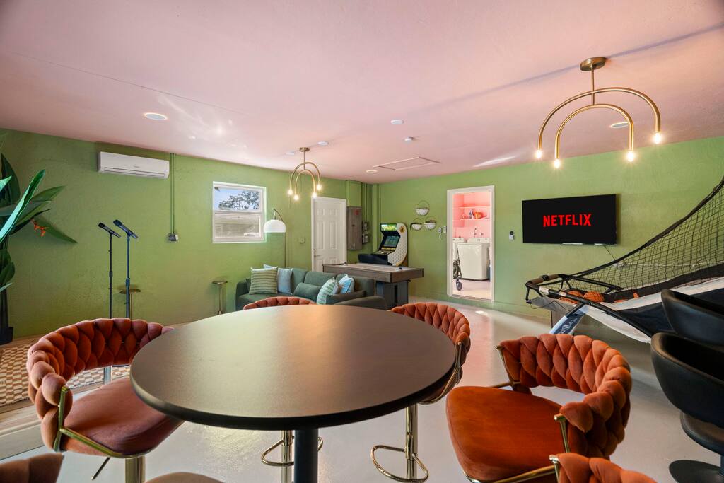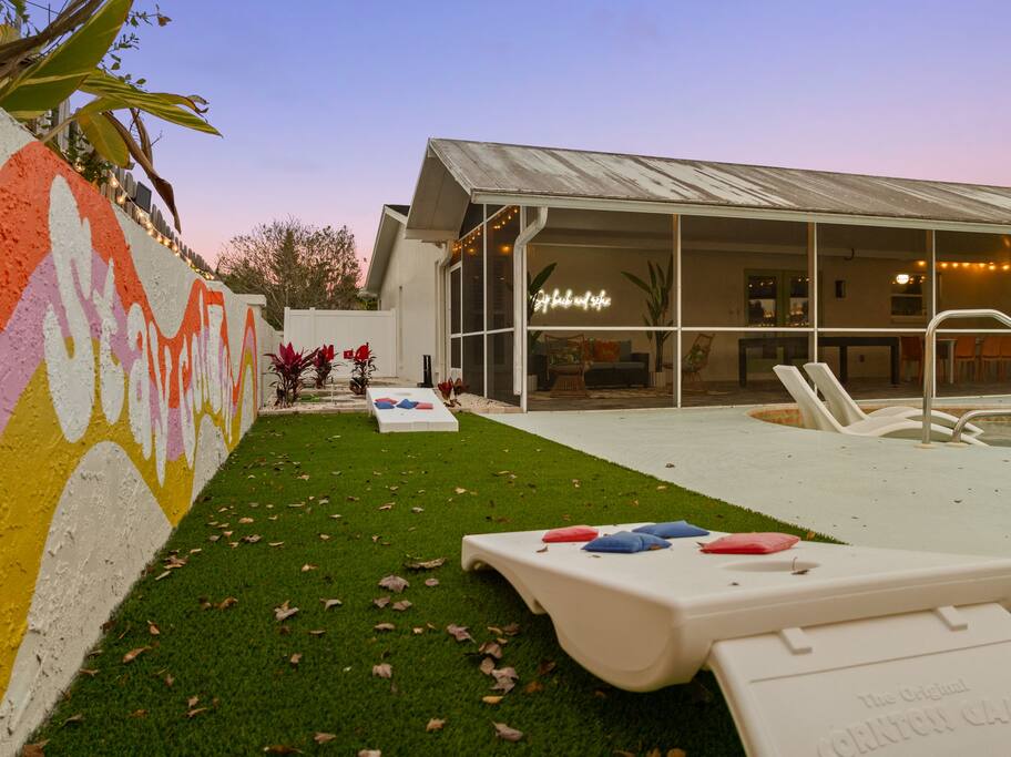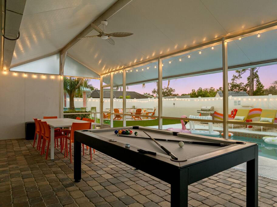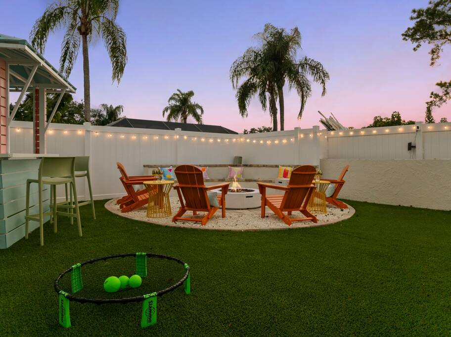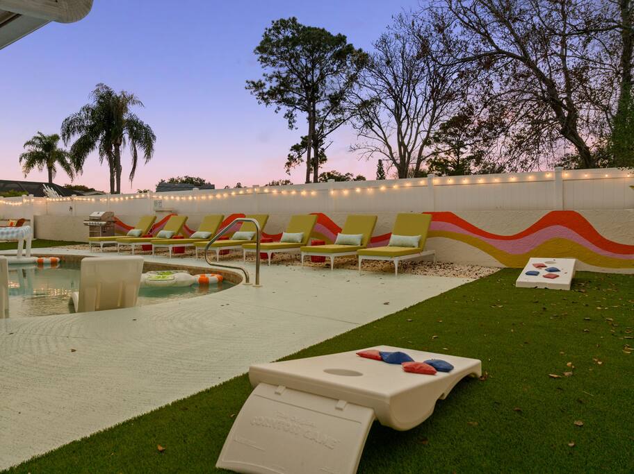 THE HONEYDEW HOUSE • Sleeps up to 14 guests comfortably • 2,143 sq ft single-family home • 3 bedrooms | 2 bathrooms • Professionally designed with a bold, playful, resort-style vibe • Built for families, girls trips, and group getaways • Packed with entertainment you won’t find nearby • Pool Safety Fence This home solves the biggest vacation problem: 👉 Everyone actually has something to do — without feeling on top of each other. 🛏️ SLEEPING ARRANGEMENTS Bedroom 1 – Primary Suite • King bed • Smart TV • Ceiling Fan Bedroom 2 – Queen Room • Two queen beds • Smart TV • Ceiling Fan • Work Desk in Room • Ensuite-style bathroom access Bedroom 3 – Bunk Room (Perfect for Kids or Groups) • Two full-over-full bunk beds (4 full beds total) • Sleeps up to 8 comfortably • Ceiling Fan 🛋️ Open-concept living spaces allow groups to spread out, relax, and reconnect without feeling crowded. 🍽️ KITCHEN & LIVING SPACES • Fully equipped kitchen for family meals or group dinners • Large dining area (sits 10) + island seating (sits 4) • Comfortable living room with Smart TV • Thoughtfully laid out for connection, not cramming 🌴 OUTDOOR RESORT-STYLE BACKYARD This is where The Honeydew House truly shines: • 🏊 Private HEATED pool - with optional pool safety fence to keep the family safe • ⛳ 4-hole putting green • 🍹 Tiki bar for poolside drinks • 🔥 Fireplace lounge seating for 8+ guests • 🍽️ Outdoor dining table for 6 • 🎯 Cornhole + Slammo game • 🍔 5-burner grill • 🪑 7 pool loungers for all-day relaxation Daytime fun → sunset cocktails → evening hangouts. 🎤 GAME ROOM FUN • Karaoke station • Games for all ages • Perfect for rainy days, late nights, or friendly competitions ⭐ AMENITIES HIGHLIGHTS 🏊 Heated Private Pool- with pool safety fence ⛳ Putting Green (4 holes) 🍹 Tiki Bar 🎤 Karaoke Game Room 🔥 Outdoor Fireplace 🍽️ Outdoor Dining (Seats 6) 🍔 5-Burner Grill 🪑 7 Pool Loungers 📺 Smart TVs 📶 Fast WiFi 🧺 Washer & Dryer 🚗 Driveway Parking for up to 5 vehicles 📍 LOCATION – CLEARWATER, FL You’re minutes from everything that makes Clearwater special: • Clearwater Beach – ~18 min • Pier 60 & sunset festivals – ~18 min • Downtown Clearwater – ~8 min • Tampa International Airport – ~23 min • Restaurants, grocery stores & coffee – under 5 min Perfect for beach days, boat rentals, dolphin tours — or staying in and enjoying your private backyard oasis. 🤝 GUEST EXPERIENCE YOU CAN TRUST ✔ Professionally managed by The Rental Realm ✔ Seamless self check-in ✔ Responsive host support We manage high-performing homes designed for comfort, cleanliness, and consistency — so you can relax and enjoy your stay.