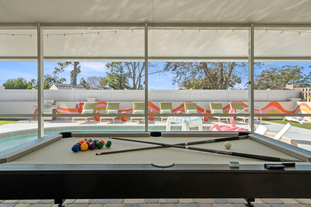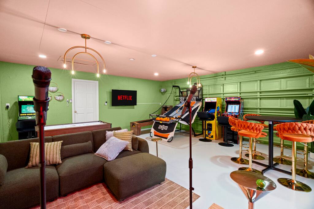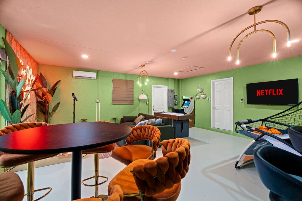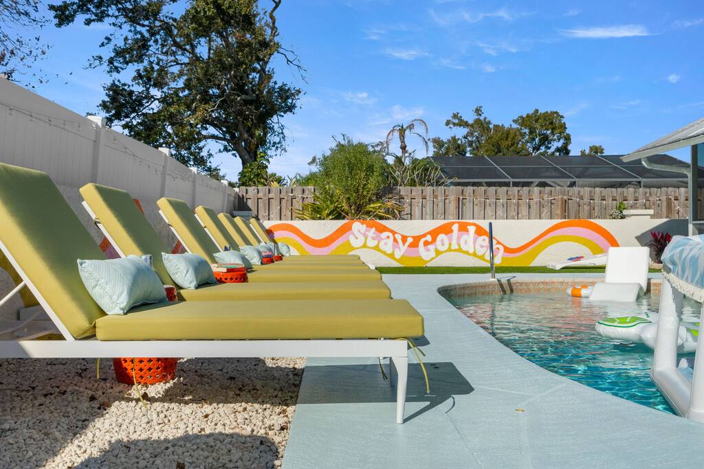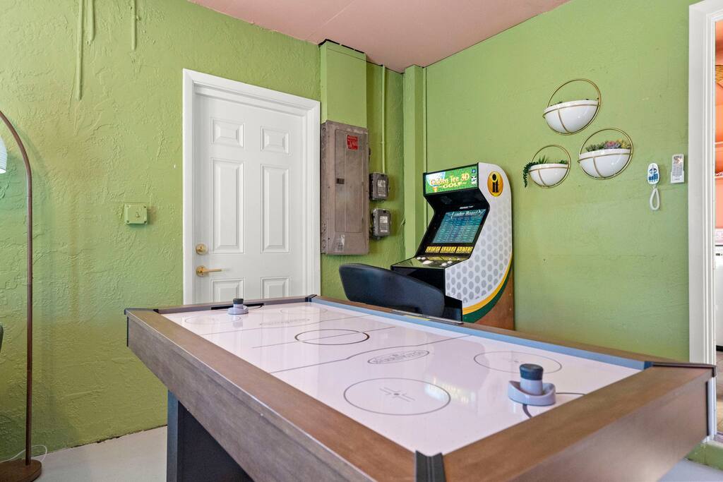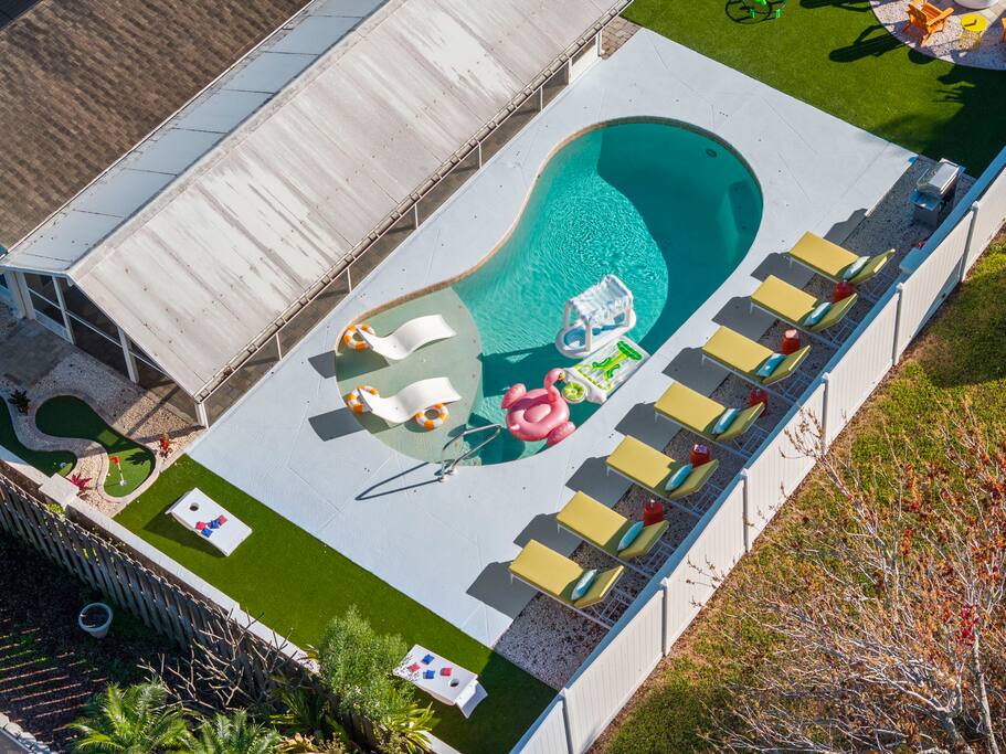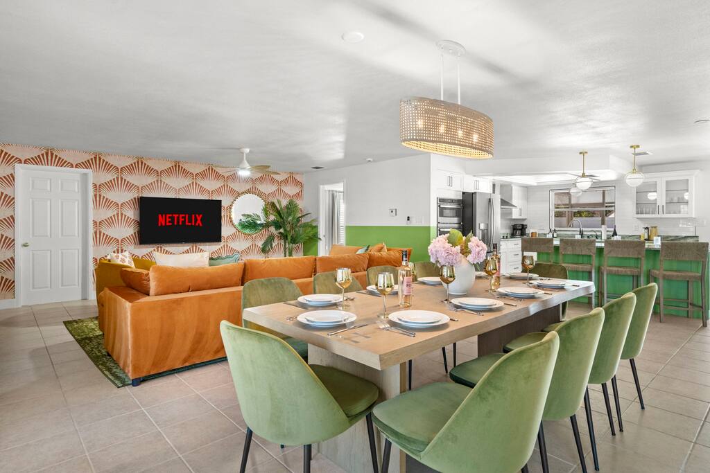 THE HONEYDEW HOUSE • Sleeps up to 14 guests comfortably • 2,143 sq ft single-family home • 3 bedrooms | 2 bathrooms • Professionally designed with a bold, playful, resort-style vibe • Built for families, girls trips, and group getaways • Packed with entertainment you won’t find nearby • Pool Safety Fence This home solves the biggest vacation problem: 👉 Everyone actually has something to do — without feeling on top of each other. 🛏️ SLEEPING ARRANGEMENTS Bedroom 1 – Primary Suite • King bed • Smart TV • Ceiling Fan Bedroom 2 – Queen Room • Two queen beds • Smart TV • Ceiling Fan • Work Desk in Room • Ensuite-style bathroom access Bedroom 3 – Bunk Room (Perfect for Kids or Groups) • Two full-over-full bunk beds (4 full beds total) • Sleeps up to 8 comfortably • Ceiling Fan 🛋️ Open-concept living spaces allow groups to spread out, relax, and reconnect without feeling crowded. 🍽️ KITCHEN & LIVING SPACES • Fully equipped kitchen for family meals or group dinners • Large dining area (sits 10) + island seating (sits 4) • Comfortable living room with Smart TV • Thoughtfully laid out for connection, not cramming 🌴 OUTDOOR RESORT-STYLE BACKYARD This is where The Honeydew House truly shines: • 🏊 Private HEATED pool - with optional pool safety fence to keep the family safe • ⛳ 4-hole putting green • 🍹 Tiki bar for poolside drinks • 🔥 Fireplace lounge seating for 8+ guests • 🍽️ Outdoor dining table for 6 • 🎯 Cornhole + Slammo game • 🍔 5-burner grill • 🪑 7 pool loungers for all-day relaxation Daytime fun → sunset cocktails → evening hangouts. 🎤 GAME ROOM FUN • Karaoke station • Games for all ages • Perfect for rainy days, late nights, or friendly competitions ⭐ AMENITIES HIGHLIGHTS 🏊 Heated Private Pool- with pool safety fence ⛳ Putting Green (4 holes) 🍹 Tiki Bar 🎤 Karaoke Game Room 🔥 Outdoor Fireplace 🍽️ Outdoor Dining (Seats 6) 🍔 5-Burner Grill 🪑 7 Pool Loungers 📺 Smart TVs 📶 Fast WiFi 🧺 Washer & Dryer 🚗 Driveway Parking for up to 5 vehicles 📍 LOCATION – CLEARWATER, FL You’re minutes from everything that makes Clearwater special: • Clearwater Beach – ~18 min • Pier 60 & sunset festivals – ~18 min • Downtown Clearwater – ~8 min • Tampa International Airport – ~23 min • Restaurants, grocery stores & coffee – under 5 min Perfect for beach days, boat rentals, dolphin tours — or staying in and enjoying your private backyard oasis. 🤝 GUEST EXPERIENCE YOU CAN TRUST ✔ Professionally managed by The Rental Realm ✔ Seamless self check-in ✔ Responsive host support We manage high-performing homes designed for comfort, cleanliness, and consistency — so you can relax and enjoy your stay.