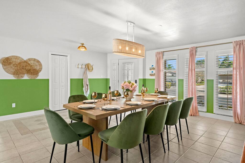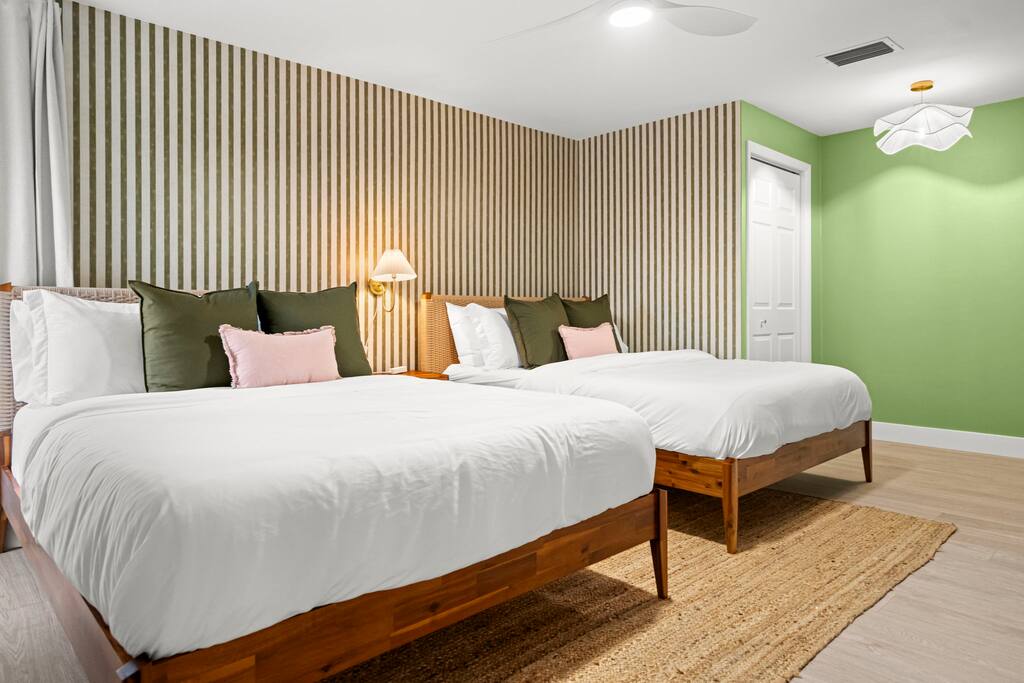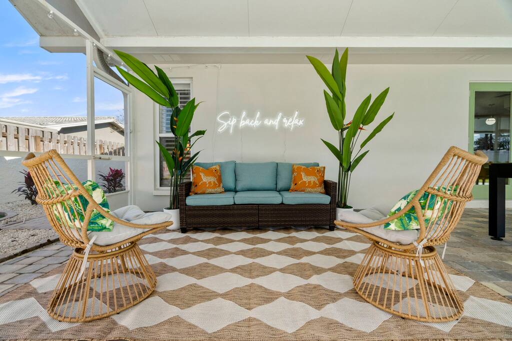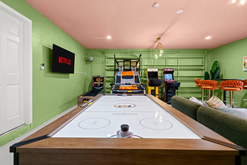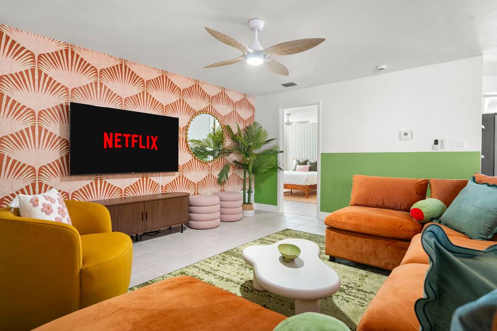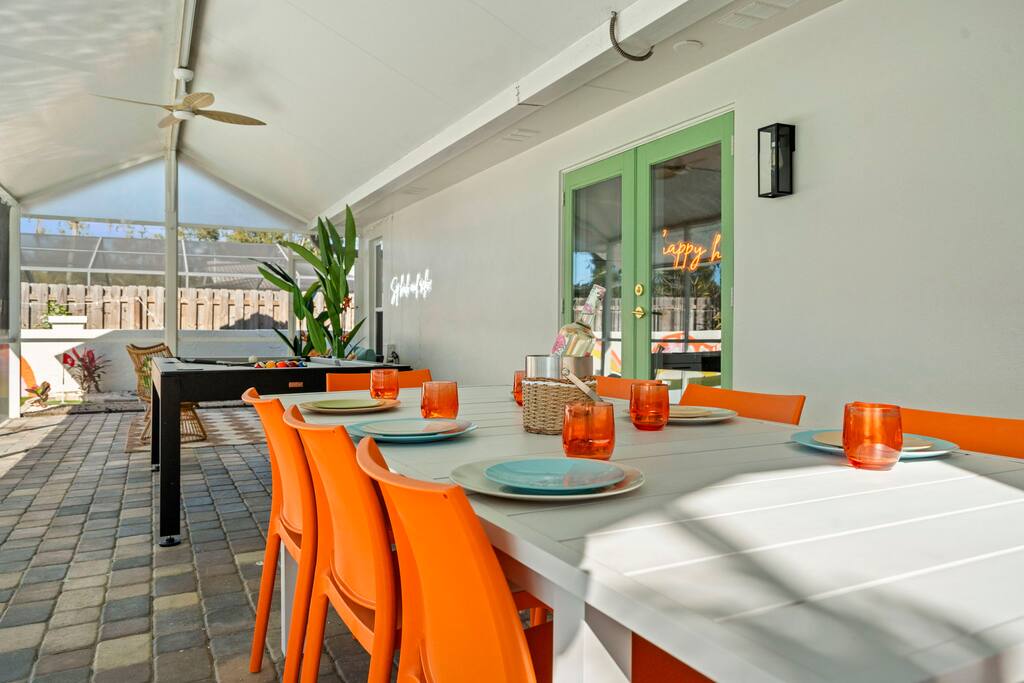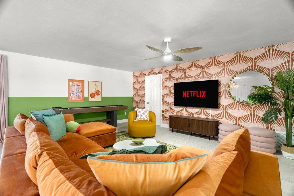 THE HONEYDEW HOUSE • Sleeps up to 14 guests comfortably • 2,143 sq ft single-family home • 3 bedrooms | 2 bathrooms • Professionally designed with a bold, playful, resort-style vibe • Built for families, girls trips, and group getaways • Packed with entertainment you won’t find nearby • Pool Safety Fence This home solves the biggest vacation problem: 👉 Everyone actually has something to do — without feeling on top of each other. 🛏️ SLEEPING ARRANGEMENTS Bedroom 1 – Primary Suite • King bed • Smart TV • Ceiling Fan Bedroom 2 – Queen Room • Two queen beds • Smart TV • Ceiling Fan • Work Desk in Room • Ensuite-style bathroom access Bedroom 3 – Bunk Room (Perfect for Kids or Groups) • Two full-over-full bunk beds (4 full beds total) • Sleeps up to 8 comfortably • Ceiling Fan 🛋️ Open-concept living spaces allow groups to spread out, relax, and reconnect without feeling crowded. 🍽️ KITCHEN & LIVING SPACES • Fully equipped kitchen for family meals or group dinners • Large dining area (sits 10) + island seating (sits 4) • Comfortable living room with Smart TV • Thoughtfully laid out for connection, not cramming 🌴 OUTDOOR RESORT-STYLE BACKYARD This is where The Honeydew House truly shines: • 🏊 Private HEATED pool - with optional pool safety fence to keep the family safe • ⛳ 4-hole putting green • 🍹 Tiki bar for poolside drinks • 🔥 Fireplace lounge seating for 8+ guests • 🍽️ Outdoor dining table for 6 • 🎯 Cornhole + Slammo game • 🍔 5-burner grill • 🪑 7 pool loungers for all-day relaxation Daytime fun → sunset cocktails → evening hangouts. 🎤 GAME ROOM FUN • Karaoke station • Games for all ages • Perfect for rainy days, late nights, or friendly competitions ⭐ AMENITIES HIGHLIGHTS 🏊 Heated Private Pool- with pool safety fence ⛳ Putting Green (4 holes) 🍹 Tiki Bar 🎤 Karaoke Game Room 🔥 Outdoor Fireplace 🍽️ Outdoor Dining (Seats 6) 🍔 5-Burner Grill 🪑 7 Pool Loungers 📺 Smart TVs 📶 Fast WiFi 🧺 Washer & Dryer 🚗 Driveway Parking for up to 5 vehicles 📍 LOCATION – CLEARWATER, FL You’re minutes from everything that makes Clearwater special: • Clearwater Beach – ~18 min • Pier 60 & sunset festivals – ~18 min • Downtown Clearwater – ~8 min • Tampa International Airport – ~23 min • Restaurants, grocery stores & coffee – under 5 min Perfect for beach days, boat rentals, dolphin tours — or staying in and enjoying your private backyard oasis. 🤝 GUEST EXPERIENCE YOU CAN TRUST ✔ Professionally managed by The Rental Realm ✔ Seamless self check-in ✔ Responsive host support We manage high-performing homes designed for comfort, cleanliness, and consistency — so you can relax and enjoy your stay.