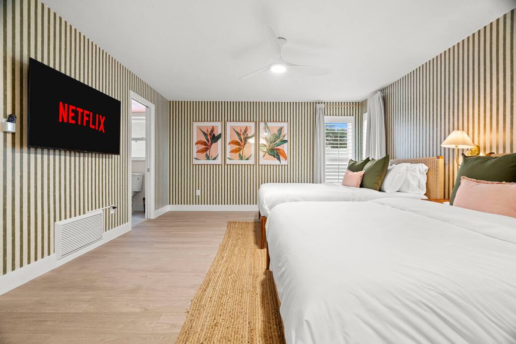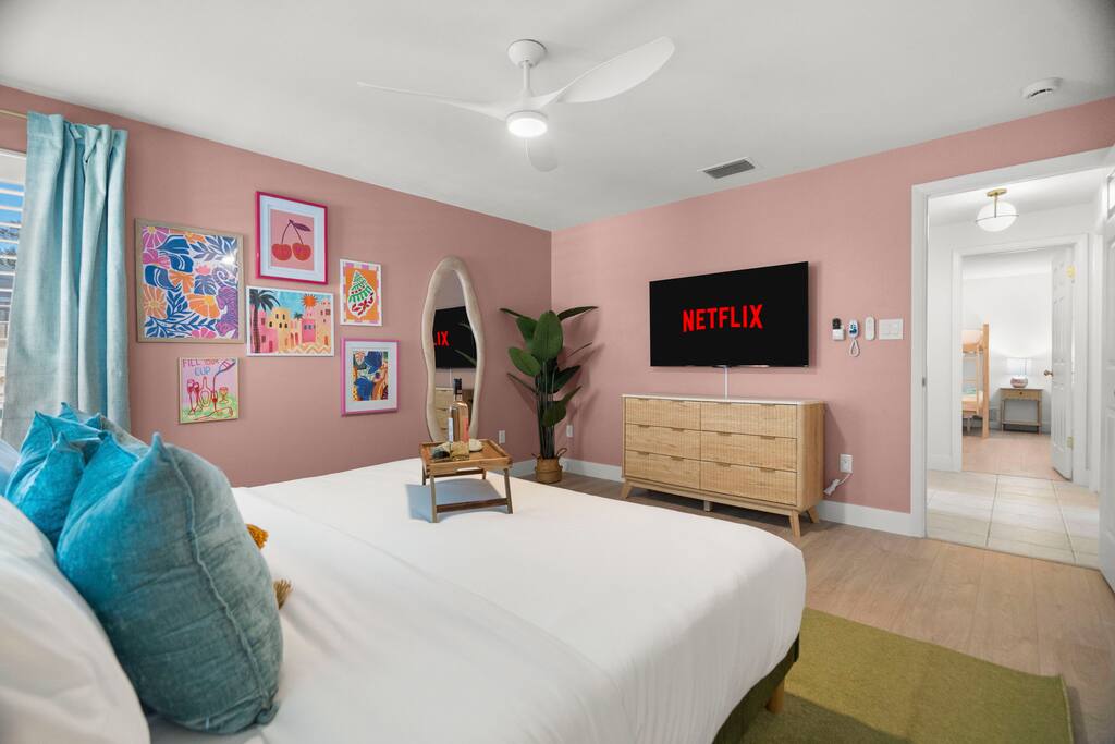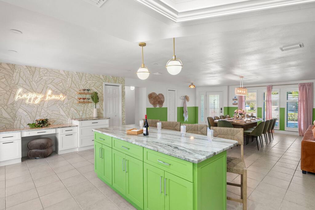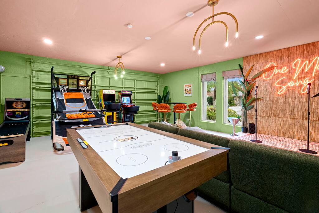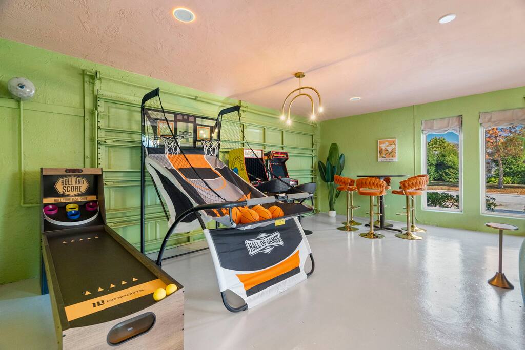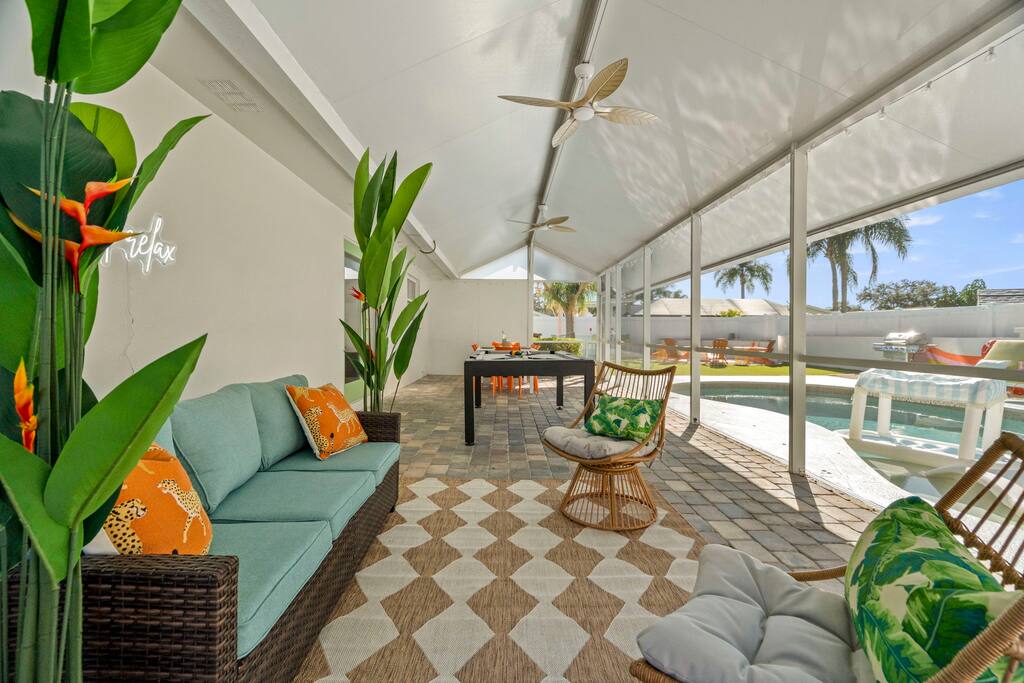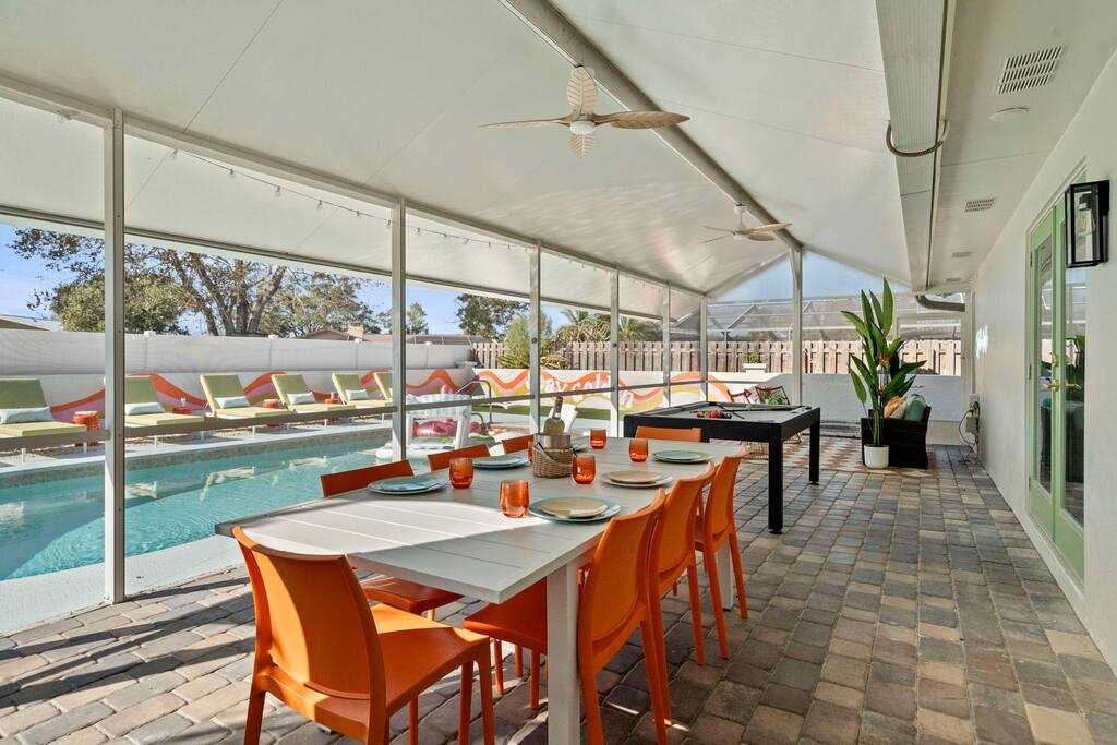 THE HONEYDEW HOUSE • Sleeps up to 14 guests comfortably • 2,143 sq ft single-family home • 3 bedrooms | 2 bathrooms • Professionally designed with a bold, playful, resort-style vibe • Built for families, girls trips, and group getaways • Packed with entertainment you won’t find nearby • Pool Safety Fence This home solves the biggest vacation problem: 👉 Everyone actually has something to do — without feeling on top of each other. 🛏️ SLEEPING ARRANGEMENTS Bedroom 1 – Primary Suite • King bed • Smart TV • Ceiling Fan Bedroom 2 – Queen Room • Two queen beds • Smart TV • Ceiling Fan • Work Desk in Room • Ensuite-style bathroom access Bedroom 3 – Bunk Room (Perfect for Kids or Groups) • Two full-over-full bunk beds (4 full beds total) • Sleeps up to 8 comfortably • Ceiling Fan 🛋️ Open-concept living spaces allow groups to spread out, relax, and reconnect without feeling crowded. 🍽️ KITCHEN & LIVING SPACES • Fully equipped kitchen for family meals or group dinners • Large dining area (sits 10) + island seating (sits 4) • Comfortable living room with Smart TV • Thoughtfully laid out for connection, not cramming 🌴 OUTDOOR RESORT-STYLE BACKYARD This is where The Honeydew House truly shines: • 🏊 Private HEATED pool - with optional pool safety fence to keep the family safe • ⛳ 4-hole putting green • 🍹 Tiki bar for poolside drinks • 🔥 Fireplace lounge seating for 8+ guests • 🍽️ Outdoor dining table for 6 • 🎯 Cornhole + Slammo game • 🍔 5-burner grill • 🪑 7 pool loungers for all-day relaxation Daytime fun → sunset cocktails → evening hangouts. 🎤 GAME ROOM FUN • Karaoke station • Games for all ages • Perfect for rainy days, late nights, or friendly competitions ⭐ AMENITIES HIGHLIGHTS 🏊 Heated Private Pool- with pool safety fence ⛳ Putting Green (4 holes) 🍹 Tiki Bar 🎤 Karaoke Game Room 🔥 Outdoor Fireplace 🍽️ Outdoor Dining (Seats 6) 🍔 5-Burner Grill 🪑 7 Pool Loungers 📺 Smart TVs 📶 Fast WiFi 🧺 Washer & Dryer 🚗 Driveway Parking for up to 5 vehicles 📍 LOCATION – CLEARWATER, FL You’re minutes from everything that makes Clearwater special: • Clearwater Beach – ~18 min • Pier 60 & sunset festivals – ~18 min • Downtown Clearwater – ~8 min • Tampa International Airport – ~23 min • Restaurants, grocery stores & coffee – under 5 min Perfect for beach days, boat rentals, dolphin tours — or staying in and enjoying your private backyard oasis. 🤝 GUEST EXPERIENCE YOU CAN TRUST ✔ Professionally managed by The Rental Realm ✔ Seamless self check-in ✔ Responsive host support We manage high-performing homes designed for comfort, cleanliness, and consistency — so you can relax and enjoy your stay.