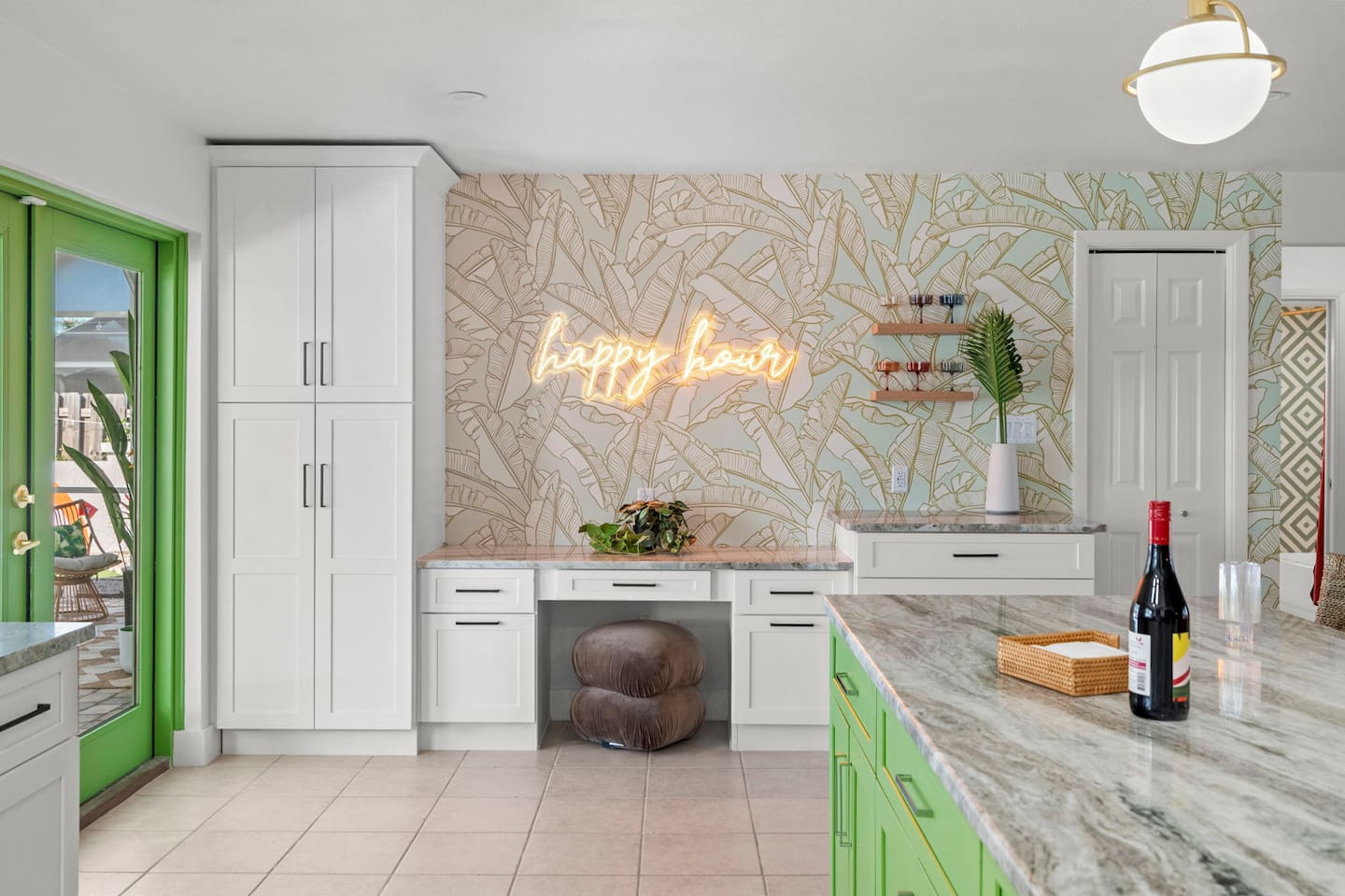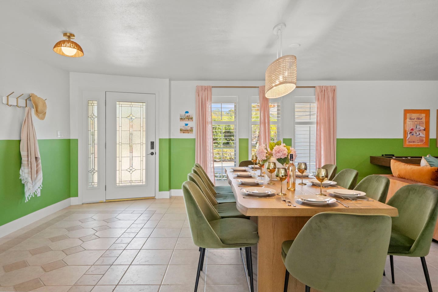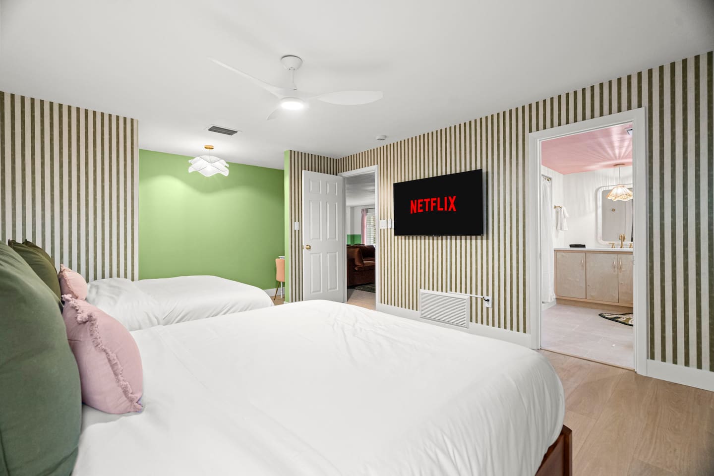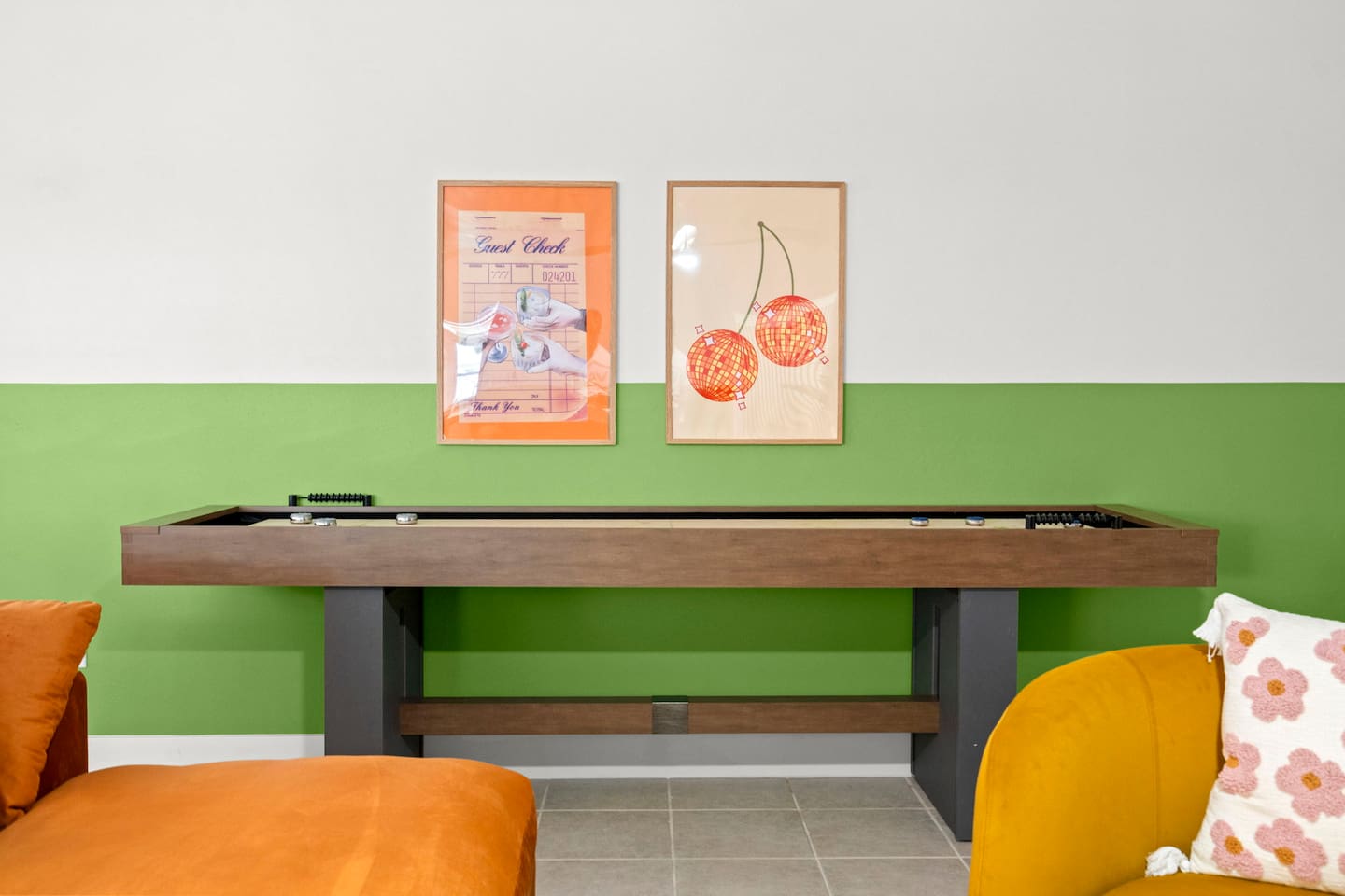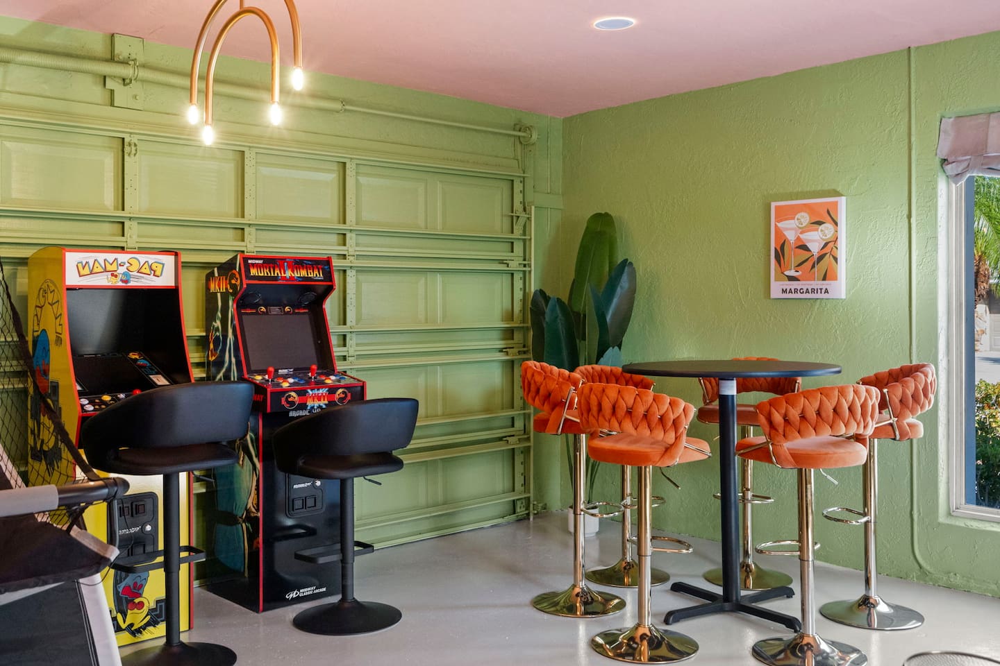 THE HONEYDEW HOUSE • Sleeps up to 14 guests comfortably • 2,143 sq ft single-family home • 3 bedrooms | 2 bathrooms • Professionally designed with a bold, playful, resort-style vibe • Built for families, girls trips, and group getaways • Packed with entertainment you won’t find nearby • Pool Safety Fence This home solves the biggest vacation problem: 👉 Everyone actually has something to do — without feeling on top of each other. 🛏️ SLEEPING ARRANGEMENTS Bedroom 1 – Primary Suite • King bed • Smart TV • Ceiling Fan Bedroom 2 – Queen Room • Two queen beds • Smart TV • Ceiling Fan • Work Desk in Room • Ensuite-style bathroom access Bedroom 3 – Bunk Room (Perfect for Kids or Groups) • Two full-over-full bunk beds (4 full beds total) • Sleeps up to 8 comfortably • Ceiling Fan 🛋️ Open-concept living spaces allow groups to spread out, relax, and reconnect without feeling crowded. 🍽️ KITCHEN & LIVING SPACES • Fully equipped kitchen for family meals or group dinners • Large dining area (sits 10) + island seating (sits 4) • Comfortable living room with Smart TV • Thoughtfully laid out for connection, not cramming 🌴 OUTDOOR RESORT-STYLE BACKYARD This is where The Honeydew House truly shines: • 🏊 Private HEATED pool - with optional pool safety fence to keep the family safe • ⛳ 4-hole putting green • 🍹 Tiki bar for poolside drinks • 🔥 Fireplace lounge seating for 8+ guests • 🍽️ Outdoor dining table for 6 • 🎯 Cornhole + Slammo game • 🍔 5-burner grill • 🪑 7 pool loungers for all-day relaxation Daytime fun → sunset cocktails → evening hangouts. 🎤 GAME ROOM FUN • Karaoke station • Games for all ages • Perfect for rainy days, late nights, or friendly competitions ⭐ AMENITIES HIGHLIGHTS 🏊 Heated Private Pool- with pool safety fence ⛳ Putting Green (4 holes) 🍹 Tiki Bar 🎤 Karaoke Game Room 🔥 Outdoor Fireplace 🍽️ Outdoor Dining (Seats 6) 🍔 5-Burner Grill 🪑 7 Pool Loungers 📺 Smart TVs 📶 Fast WiFi 🧺 Washer & Dryer 🚗 Driveway Parking for up to 5 vehicles 📍 LOCATION – CLEARWATER, FL You’re minutes from everything that makes Clearwater special: • Clearwater Beach – ~18 min • Pier 60 & sunset festivals – ~18 min • Downtown Clearwater – ~8 min • Tampa International Airport – ~23 min • Restaurants, grocery stores & coffee – under 5 min Perfect for beach days, boat rentals, dolphin tours — or staying in and enjoying your private backyard oasis. 🤝 GUEST EXPERIENCE YOU CAN TRUST ✔ Professionally managed by The Rental Realm ✔ Seamless self check-in ✔ Responsive host support We manage high-performing homes designed for comfort, cleanliness, and consistency — so you can relax and enjoy your stay.